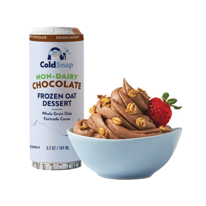 Coldsnap Non-Dairy Chocolate Oat Frozen Dessert – A rich, plant-based chocolate frozen treat made instantly with the ColdSnap Frozen Treat Machine.