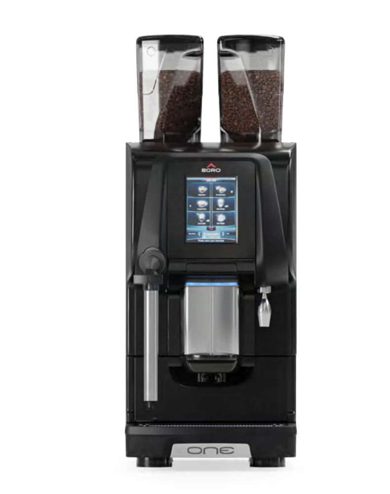 The Egro ONE Pure Coffee is a compact yet powerful super automatic designed for high-volume espresso and Americano service. With its stainless steel brew group, dual grinders, and touchscreen interface, it delivers precision and consistency in every cup. Ideal for offices, hotels, convenience stores, and restaurants, it simplifies workflow with automated cleaning and reliable daily output.