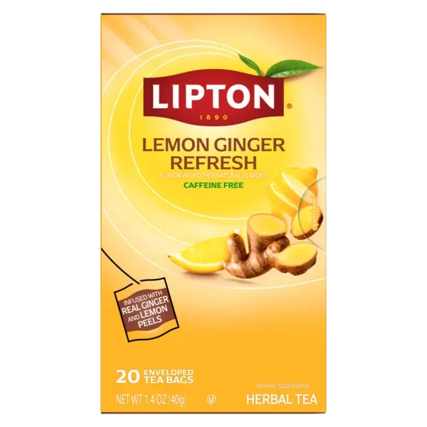 Lipton Lemon Ginger Refresh Herbal Tea Bags Lipton Lemon Ginger Refresh pairs zesty lemon and spicy ginger for a lively, caffeine-free tea that promotes digestion and well-being. It’s the perfect addition to a wellness-focused office tea selection, ideal for post-lunch breaks or afternoon resets.