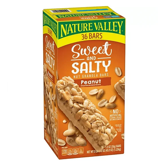 Nature Valley Sweet & Salty Peanut Granola Bars, 36 ct/1.2 oz – Crunchy granola and roasted peanuts dipped in peanut butter coating, perfectly portioned for office snacking.