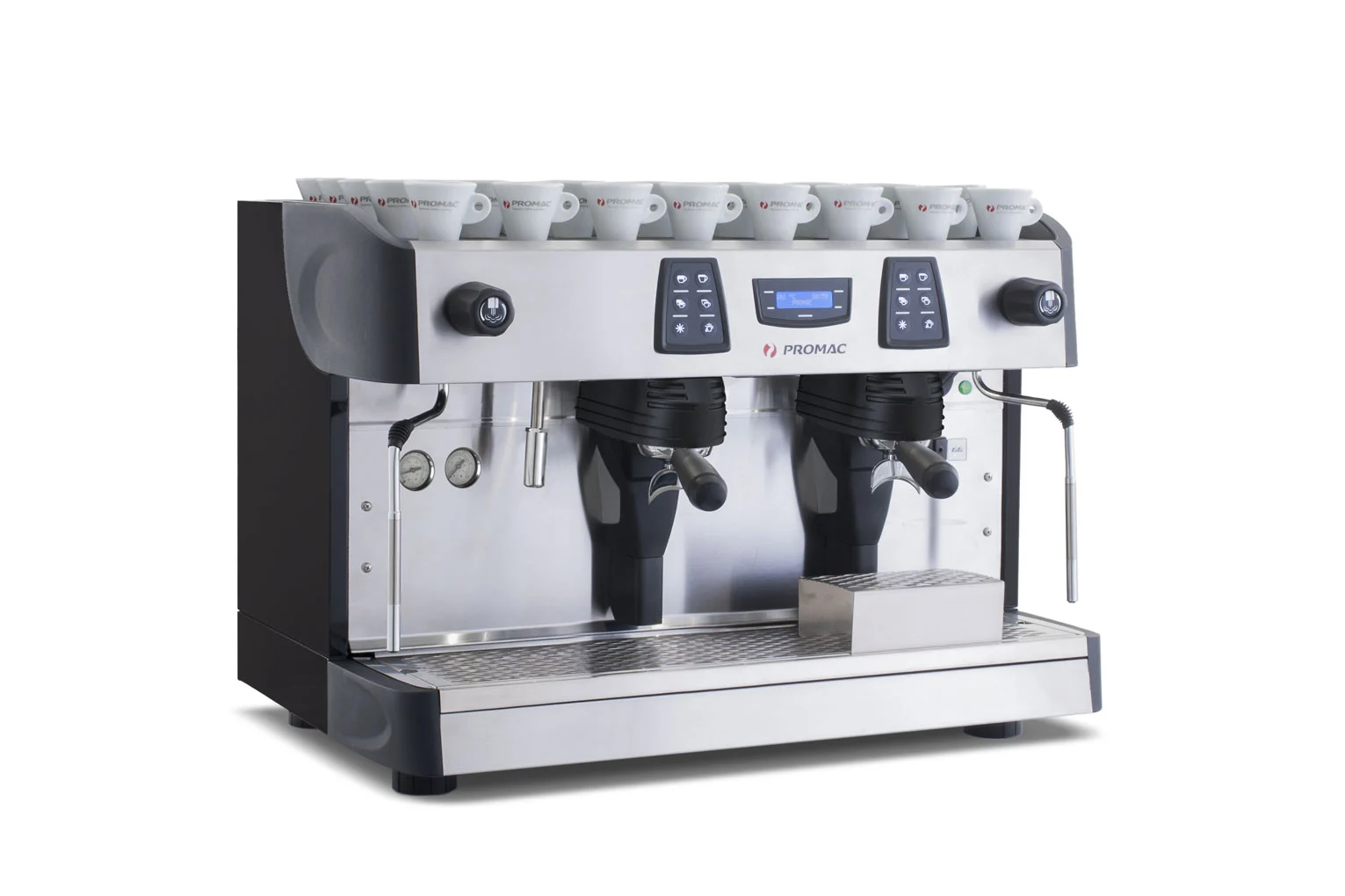 The Promac Green Tall is a professional automatic espresso machine designed for medium to large offices, cafés, and hospitality venues that require consistent, high-volume coffee service. Available in 2-group and 3-group configurations, the Green Tall is optimized for larger cup sizes (up to 32 oz) and features an advanced multifunction LCD display for precise control and maintenance alerts.
