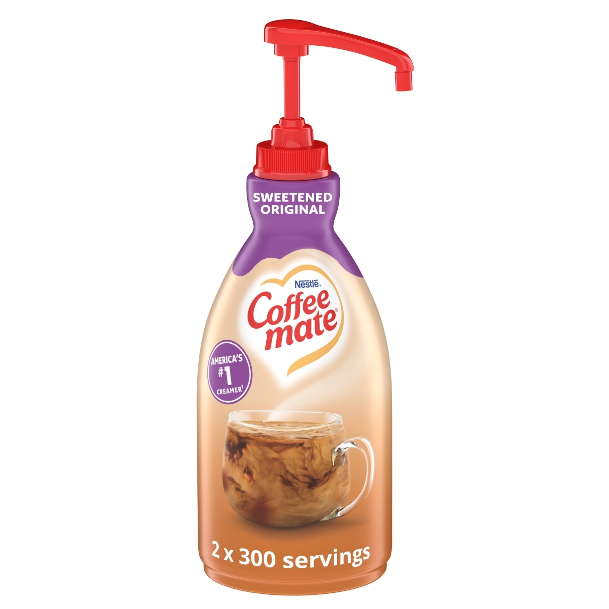Coffee mate Sweetened Original Pump Bottle Coffee mate Sweetened Original delivers rich, creamy flavor with just the right touch of sweetness. This convenient pump bottle is perfect for high-traffic office coffee stations, offering mess-free dispensing and consistent taste in every cup. No refrigeration required.