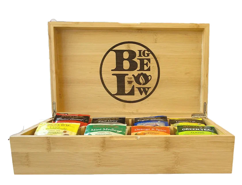 A beautifully crafted wood chest. Contains 8 tea bags each of the following: Lemon Lift, Earl Grey, “Constant Comment”, English Teatime, Green Tea, Cozy Chamomile Herb, Mint Medley Herb and Orange & Spice Herb Teas. 64 tea bags in all. Dimensions: 13.65″L x 8.35″W x 3.9″H. Color of wood may vary slightly from picture.